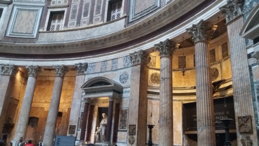 În aceeași zi am ajuns și la Panteon, unde intrarea era gratuită. Acest templu, dedicat tuturor zeilor, a fost transformat mai apoi într-o biserică romano-catolică. Acoperișul și cupola sunt cele originare, ele supraviețuind până în zilele noastre. Panteonul e locul unde își dorm somnul de veci multe personalități ale Italiei. E o clădire care m-a impresionat de cum am văzut-o, senzație care a sporit când am cunoscut și interiorul. Imensitatea și liniștea, care se păstrează de către turiștii ce intră aici, nu au cum să nu-ți rămână în memorie.