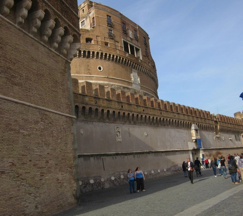 Am urmat calea faimosului bulevard ,,Via della Conciliazione” care duce din Piața Sfântul Petru la Castelul Sant’Angelo și Ponte Sant’Angelo. Castelul arată ca o fortăreața și a fost folosit ca adăpost în vremuri grele de foarte mulți papi. Foamea ne-a împins să căutăm un local în apropierea acestor obiective, ceea ce nu vă recomand deoarece prețurile sunt foarte mari aici față de alte locuri.