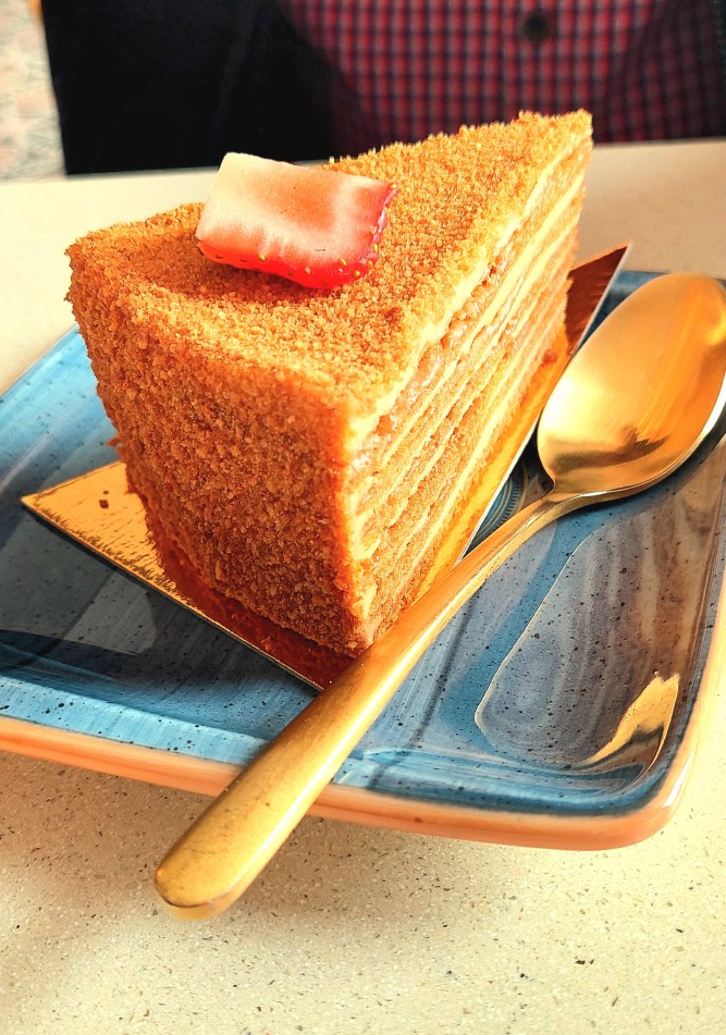 E în drumul oricui are treabă prin mall, loc de popas după lungi căutări prin magazine. Cam așa procedez și eu. Mă opresc să beau un ceai, de obicei din petale de trandafiri, mere și vișine. Dar cele mai tentante sunt feliile de tort, variate și foarte colorate. Nu le-am încercat încă pe toate, dar nu mai am mult.