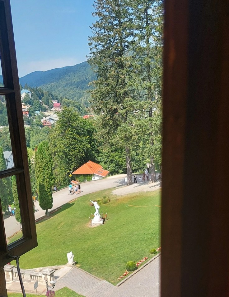 Văzusem multe poze pe Facebook, pe conturile unor prieteni sau pe bloguri, iar peisajul mi-a atras atenția în mod deosebit. Panorama pe care o oferă asupra Caraimanului este superbă. Parcul ce înconjoară castelul are mult potențial, sunt acolo fântâni, sculpturi contemporane, chiar și un mic parc de distracție, dar cred că se poate face mai mult.
