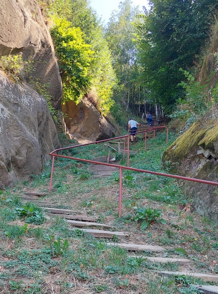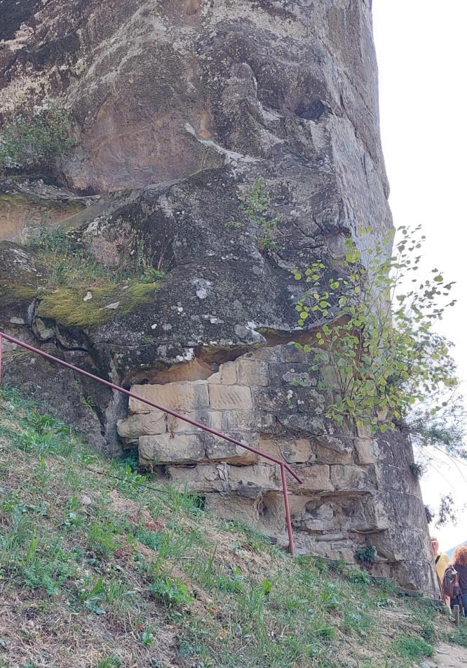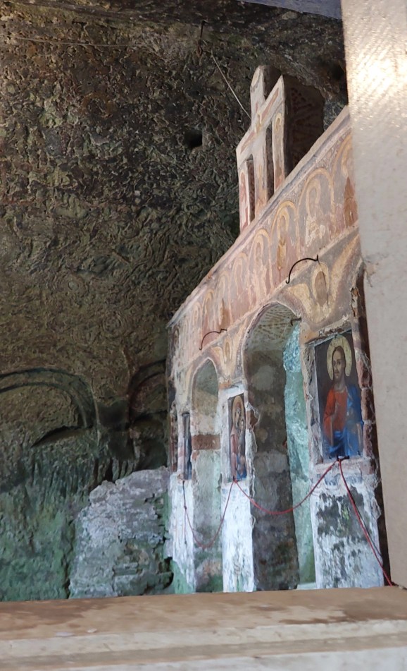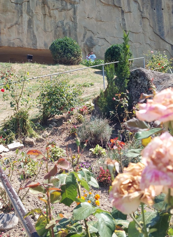 Momentul vizitei noastre nu a coincis cu oficializarea vreunei slujbe religioase. Bănuiesc că ele se desfășoară mai rar. În schimb, era foarte multă lume la fața locului, mulți urcau deasupra stâncii, pe un platou de unde priveliștea asupra satului cred că era frumoasă. Ca de obicei, eu nu am urcat din cauza răului de înălțime. Ne-am bucurat de informațiile prezentate de ghidul nostru foarte tânăr, probabil un elev sau un student voluntar.