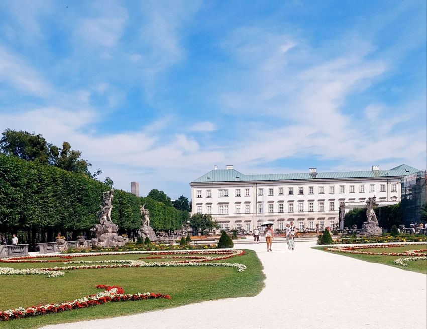 Am ținut cont de ce a spus AI-ul și le-am cam bifat pe toate. Desigur sunt cele mai importante locuri de văzut în această urbe. Mașina am parcat-o la capăt de oraș, unde tariful era mai convenabil, iar spre centru ne-am deplasat cu autobuzul. Primele văzute: râul Salzach care traversează orașul și Palatul Mirabell, uimitor așa cum îi spune numele. Înconjurat de grădini frumoase deschise publicului, palatul găzduiește astăzi evenimente culturale. Cea mai impozantă sală este Marble Hall. Ajungi acolo pe o scară din marmură decorată în întregime cu îngeraşi. Unii dintre noi, cei care au vizionat ,,Sunetul muzicii”, își aduc aminte și de grădinile Palatului Mirabell.