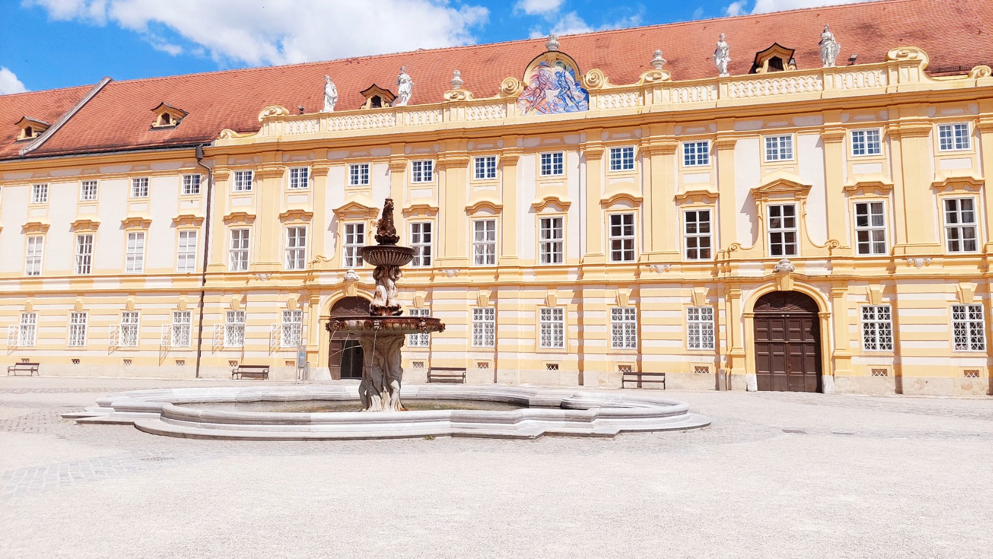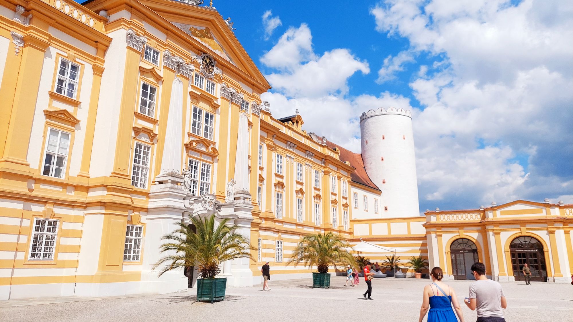 Mai întâi la Abația Melk, poate cel mai important si impozant lăcaș religios al Austriei. Abația este construită în stil baroc. Este situată într-o zonă terasată la 88 km de Viena. Ea aparține ordinului benedictin și are rădăcini care pornesc din 1089. Am ajuns aici într-o zi caniculară, era însă plin de lume, autocare întregi cu turiști. Biblioteca abației și scara imperială de la intrare sunt deosebite. Locul inspiră putere și statornicie. Vizita este însă contra cost, noi am cumpărat online biletele (< deschide ).