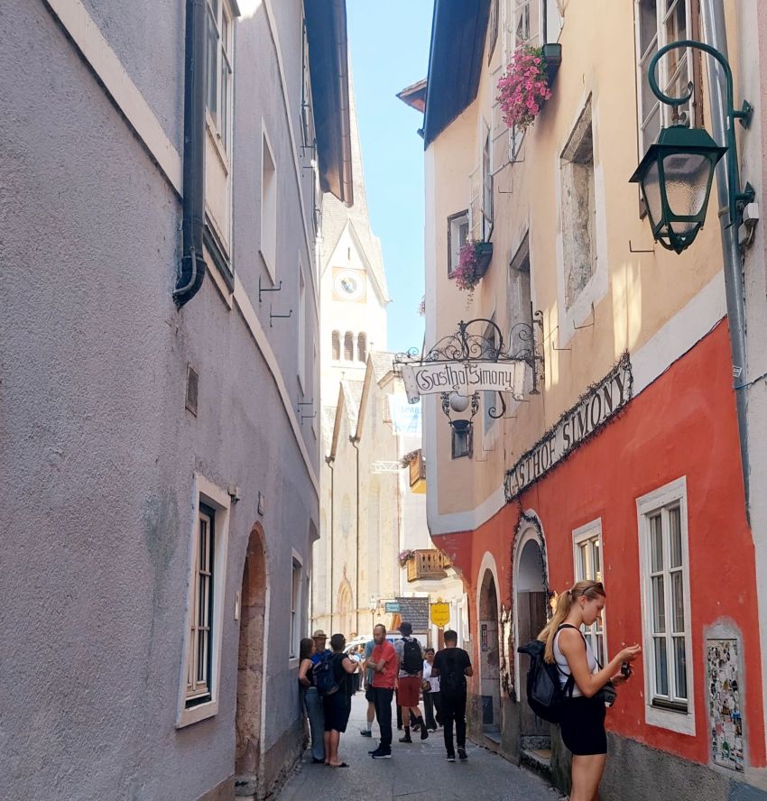 Drumul de întoarcere spre Viena ne-a dus prin Hallstatt. Un loc foarte pitoresc, arhicunoscut și supraaglomerat! Orășelul este mărginit de lacul cu același nume și de munți. Este de fapt o stațiune unde se pot practica sporturile de iarnă. De asemenea, se poate face ski nautic și surfing.